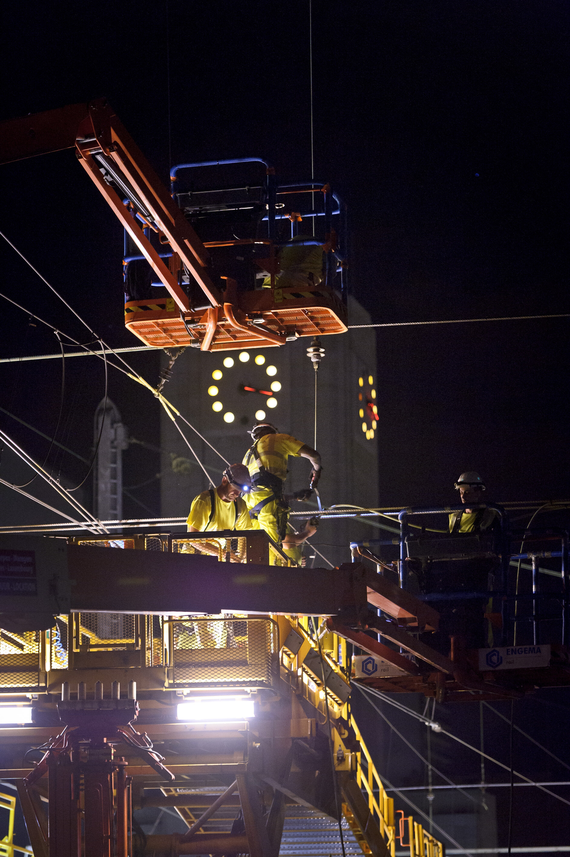 De werken zijn uitgevoerd tijdens weeknachten met alle sporen buiten dienst en buitenspanning.